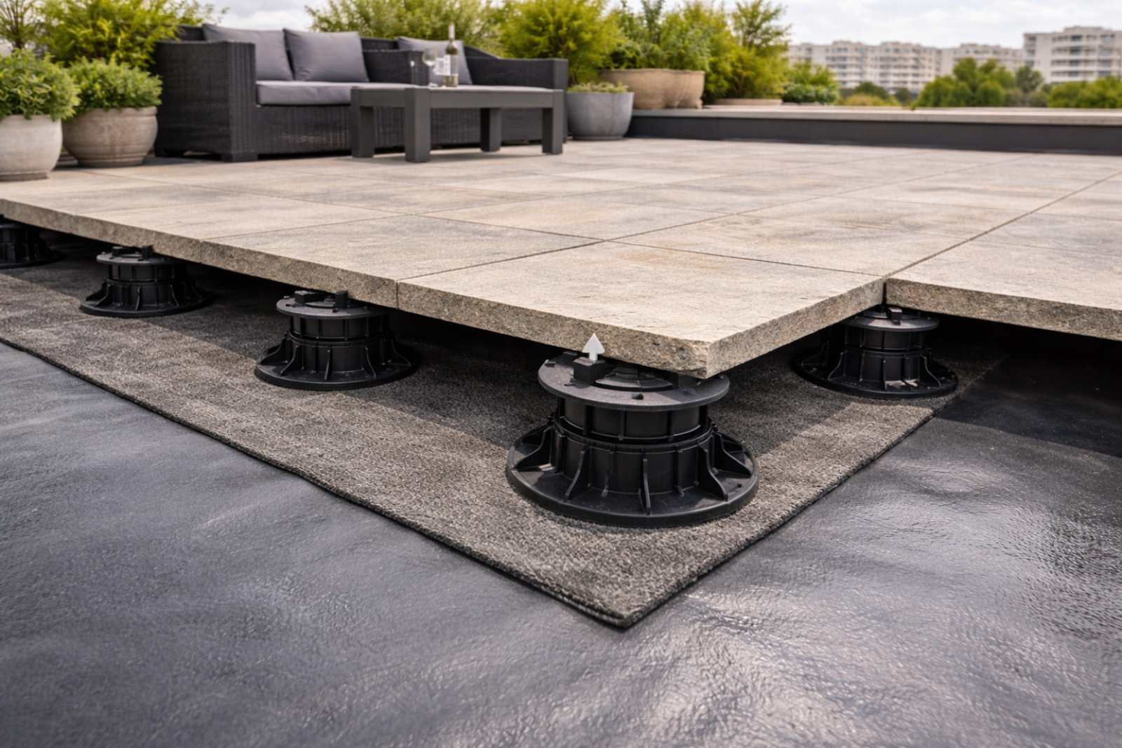 Nos dallages en pierre naturelle pour pose sur plots sont sélectionnés et transformés pour répondre aux exigences techniques des terrasses, balcons, toitures-terrasses et aménagements extérieurs.